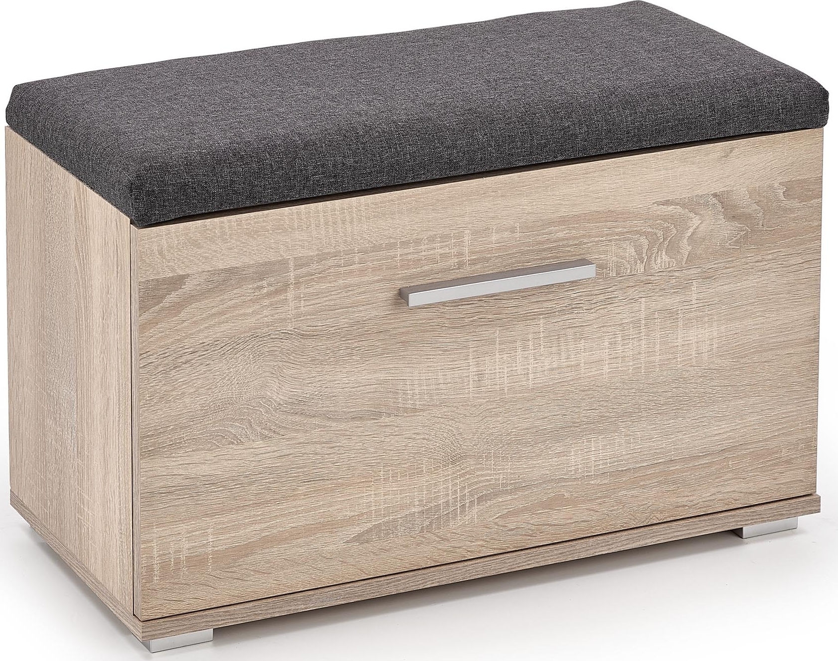 Et herlig skoskap med et moderne design. Skoskapets design gjør at det enkelt kan erstatte skohyllen, ved å rydde unna skoene til fordel for mer plass. I tillegg har det en praktisk og behagelig sittepute. Selve skapet er produsert i laminert MFP (premium treplate) med en høyglans finish, og kledd med et behagelig stoff med detaljer i krommet metall.