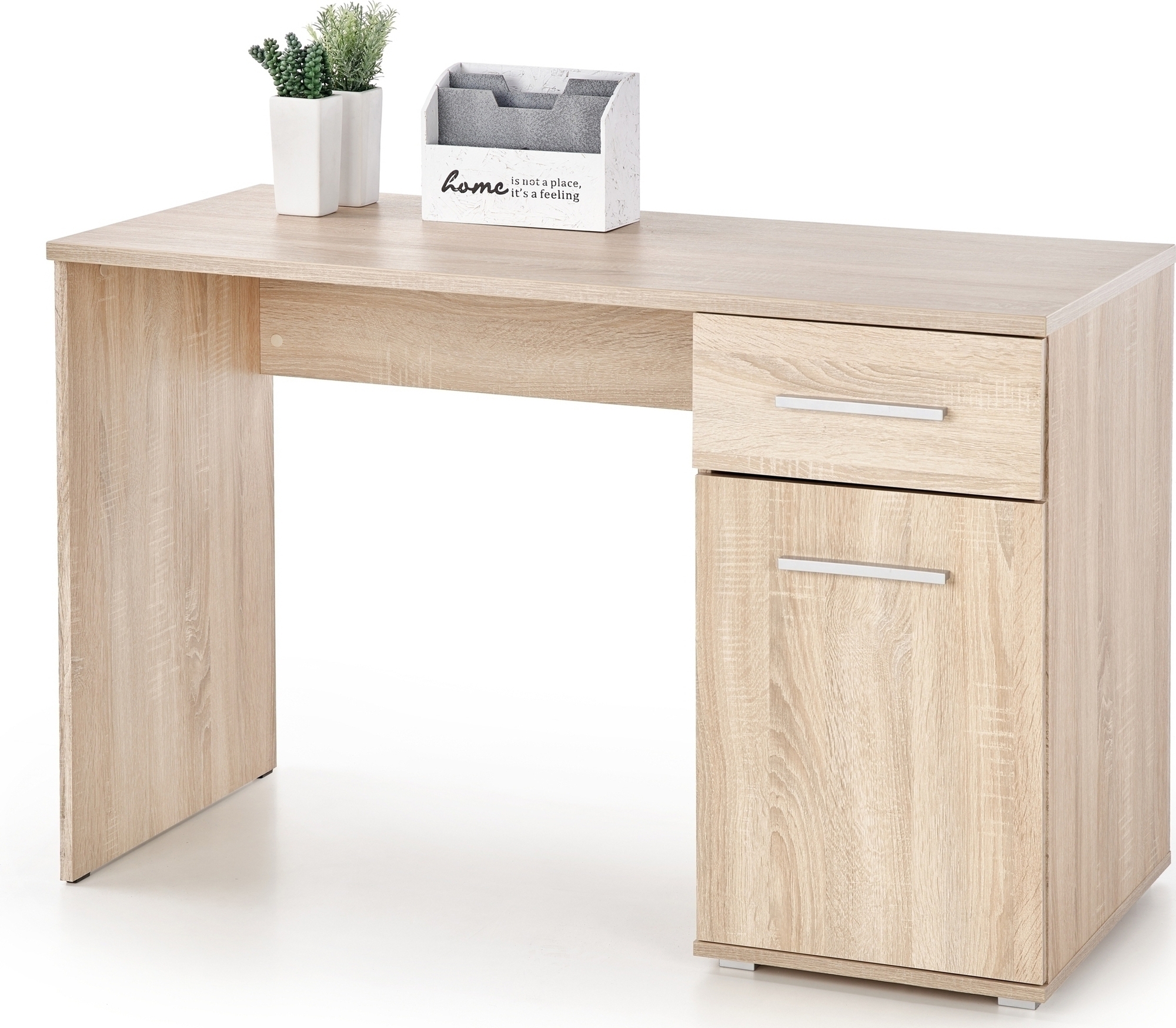 Et koselig skrivebord med et stilrent design. Skrivebordet er produsert av laminert og lakkert MFP (premium treplate) med en høyglans finish med detaljer i krommet metall. Utrustet med en skuff og ett skap for praktisk oppbevaring av kontorrekvisita