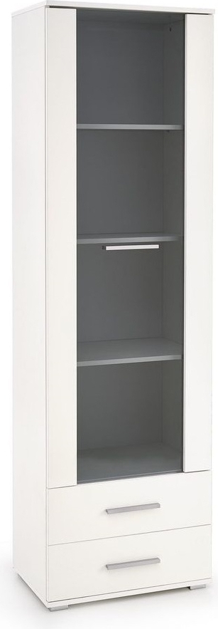 Et nydelig vitrineskap med et moderne design. Vitrineskapet er laget av laminert MFP (premium treplate) med en nydelig høyblank finish. Skapdøren er av glass og skapet er utrustet med 4 hyller og 2 skuffer for smart oppbevaring.