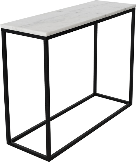 Accent konsollbord med en hvit marmortopp og sort stålunderstell. Accent er et stilrent møbel med vakkert design og en meget lang holdbarhet, takket være materialvalget.