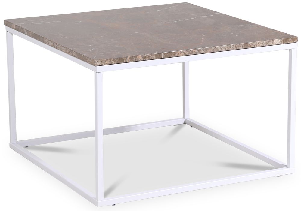 Accent stuebord med en brun ekte marmorplate og understell i hvit metall. Accent er et stilrent bord med vakker design og har en veldig lang holdbarhet. Accent er et veldig prisverdig stuebord.