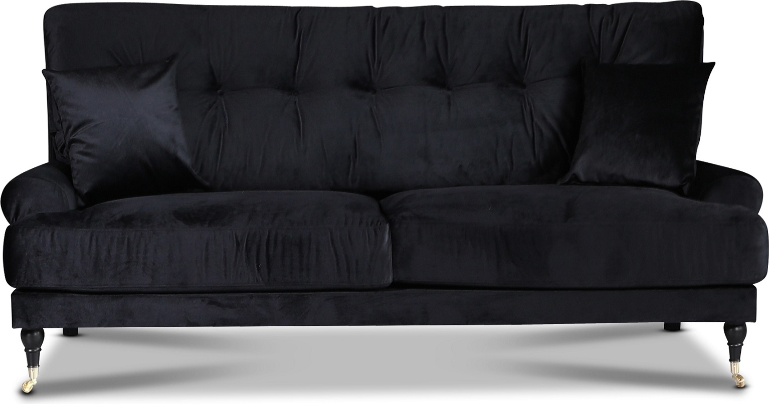 Adena 2-seters sofa har en retro design med vintageinnslag i form av klassiske Howard-ben med hjul. Ryggputen har knapper på både frem- og baksiden som gjør den vendbar samtidig, som det er pene detaljer!