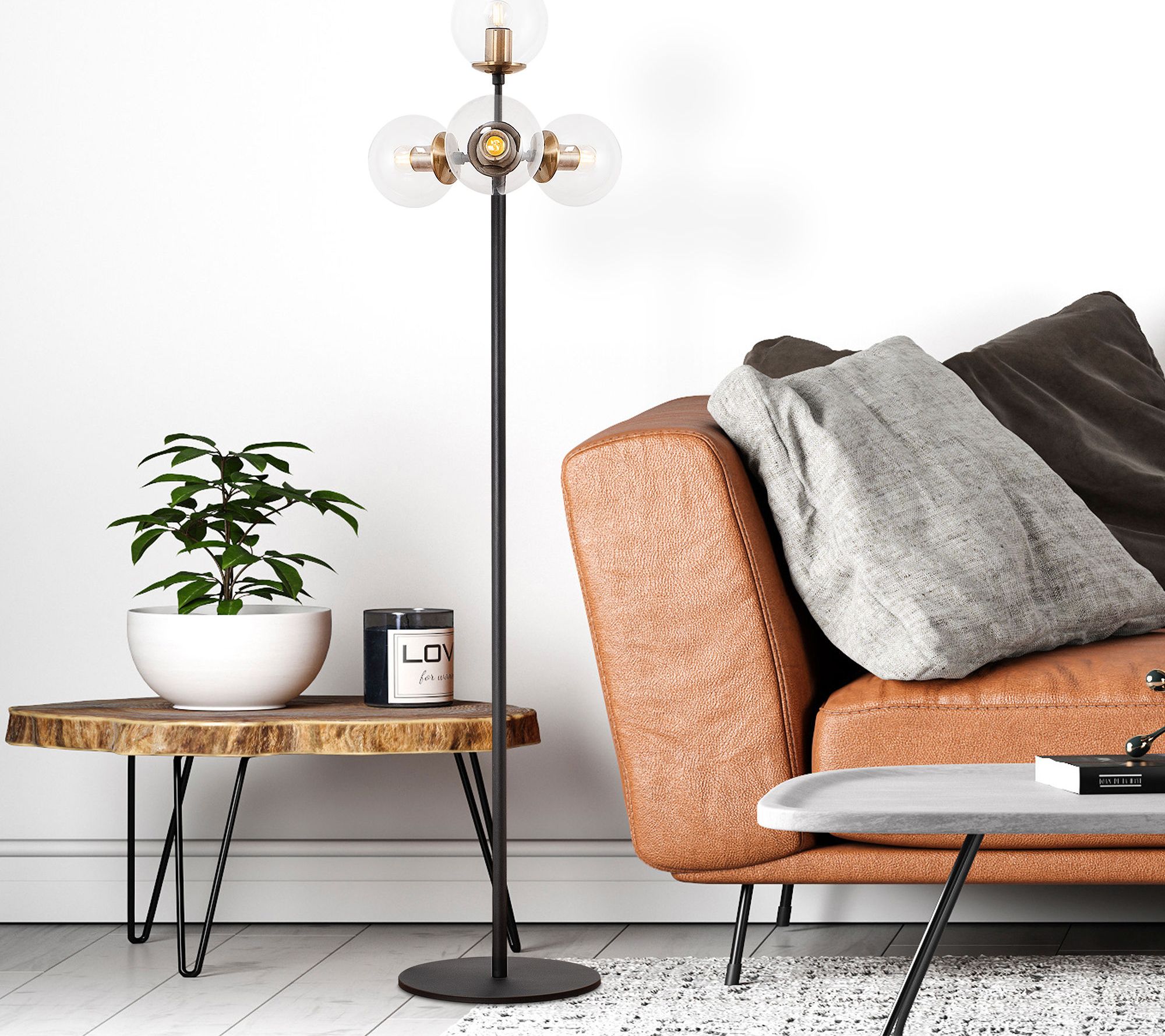 Gulvlampe laget av metall og glass. Lyskilde er ikke inkludert.