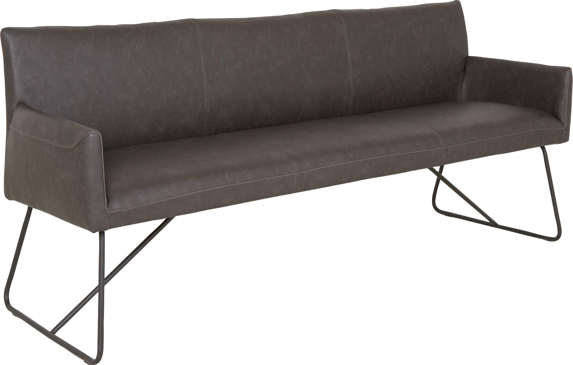Kjøkkensofa laget av metall. Møbeltrekk laget av kunstskinn.