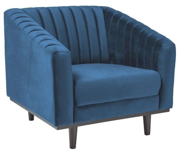 En fin lenestol med et tidløst design. Lenestolen er kledd med et veldig behagelig fløyelsstoff for maksimal luksus og komfort, og understellet er laget i heltre med en nydelig wenge-finish.