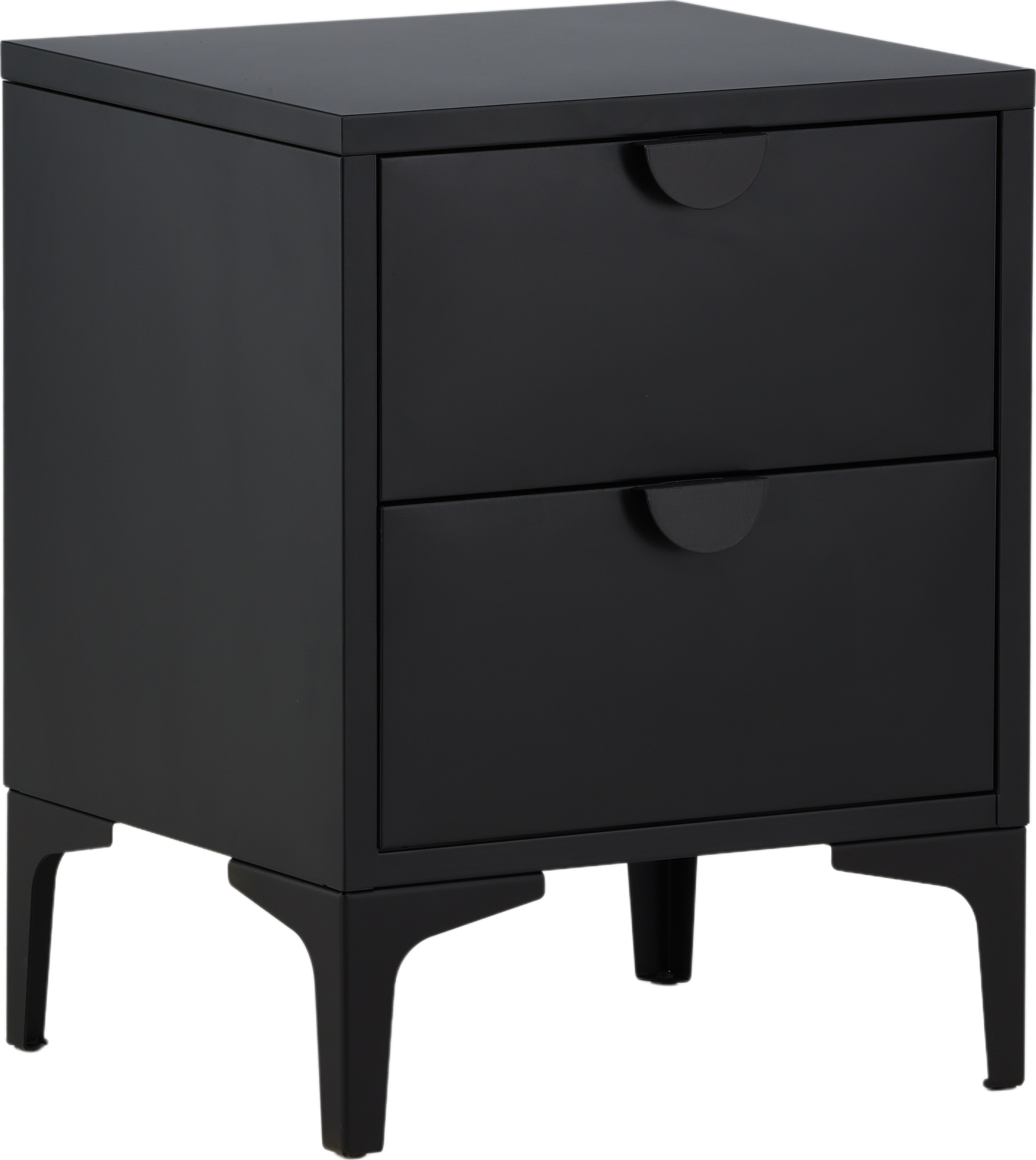 Nattbord i Alexander-serien er perfekt som oppbevaringsløsning. Det firkantede sidebordet i sort stål har to skuffer for skjult oppbevaring og en stilig topp med akkurat nok plass til en nattbordslampe, en god bok og en hvilken som helst pen interiørdetalj for et moderne uttrykk. Nattbordet løftes opp av fire ben som gir en mer luftig følelse og det rette designet gjør bordet enkelt å plassere og enkelt å matche. Se bildene våre for inspirasjon.