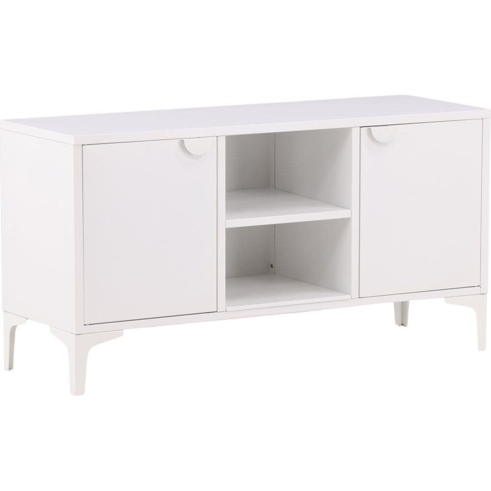 Det perfekte TV-stativet for det moderne og smarte hjemmet. Denne benken fra Alexander-serien er laget av hvitt stål og har en praktisk dybde som muliggjør mye oppbevaring. Benken har to hyller med to dører for skjult oppbevaring og en midtdel med åpen oppbevaring - perfekt for stilige detaljer som en moderne vase eller en bok. Designet er rett og slett utrolig gjennomtenkt og i tråd med trenden samt tidløst.