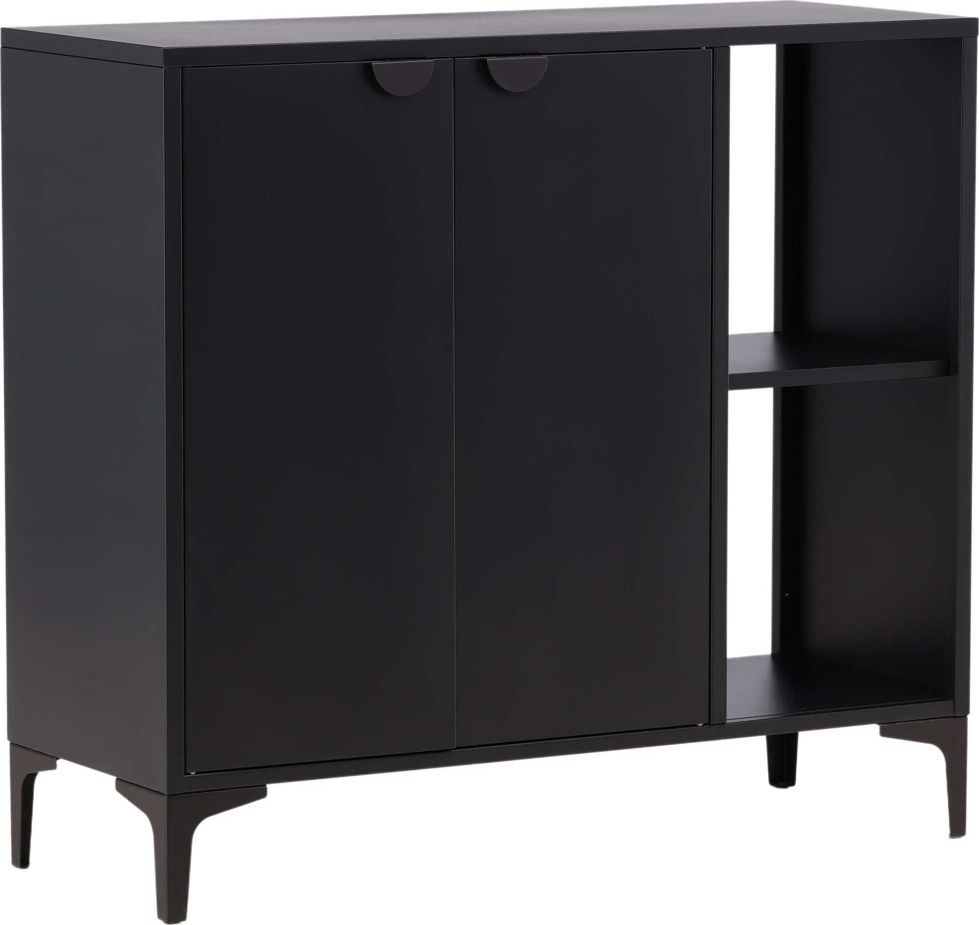 Et sotet svart avlastningsskap er like stilig som det er en smart løsning i hjemmet ditt. Alexander avlastningsskap har en klassisk, industriell design i sort pulverlakkert stål. Skapet har to dører for skjult oppbevaring og to åpne hyller som er perfekte for stilige dekorasjoner og detaljer. Skapet løftes opp av smale ben som skaper en luftig følelse og også gjør det lettere for støvsugeren. Rett og slett det perfekte oppbevaringsstykket - fyll med servise, bøker eller vakre dekorasjoner. Den fleksible størrelsen på skapet gjør det også enkelt å plassere og passer godt inn i de fleste rom i hjemmet.