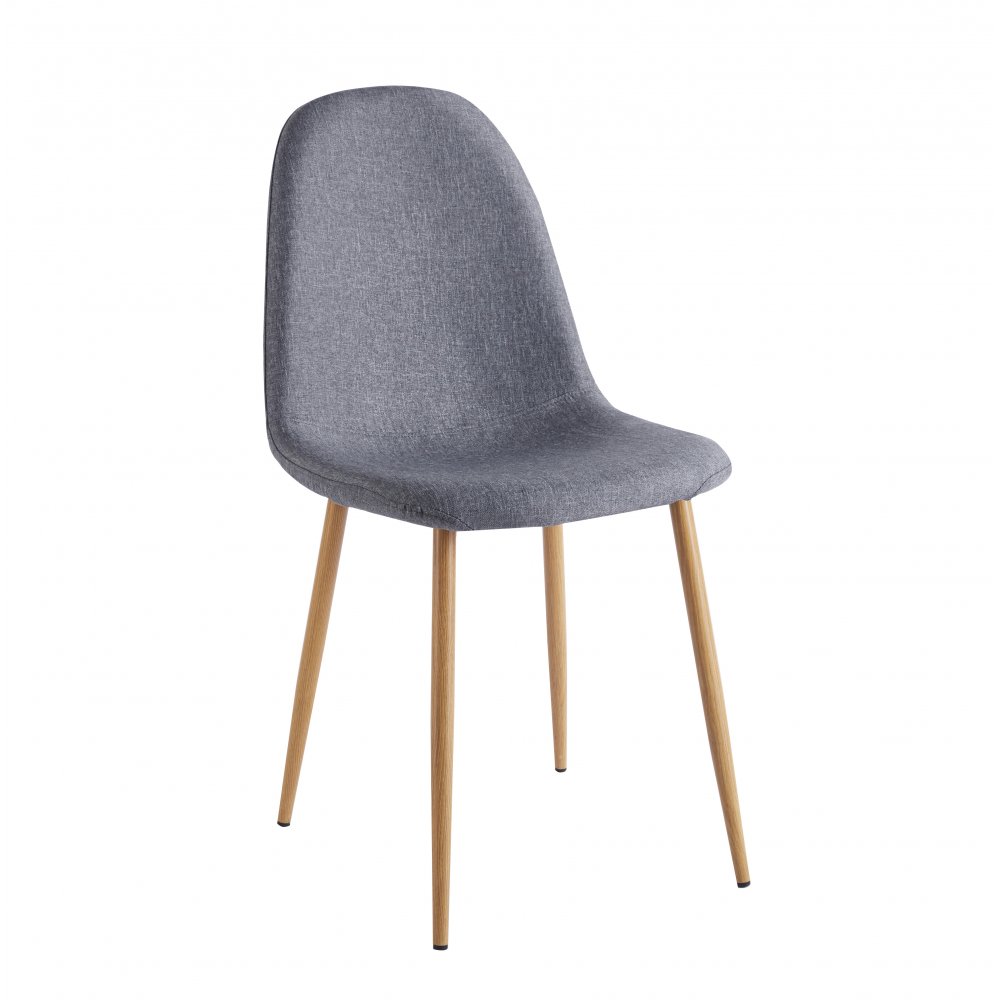 Alfred spisestol i stilig, moderne grått stoff med eksfolierte metallben.
