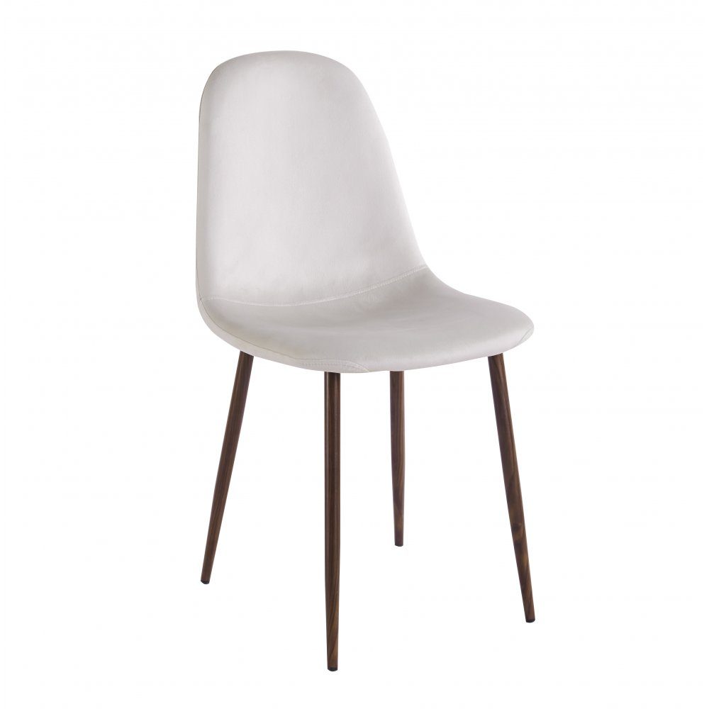Alfred spisestol i mykt, moderne beige fløyelsstoff med mørkebrune, folierede metallben.