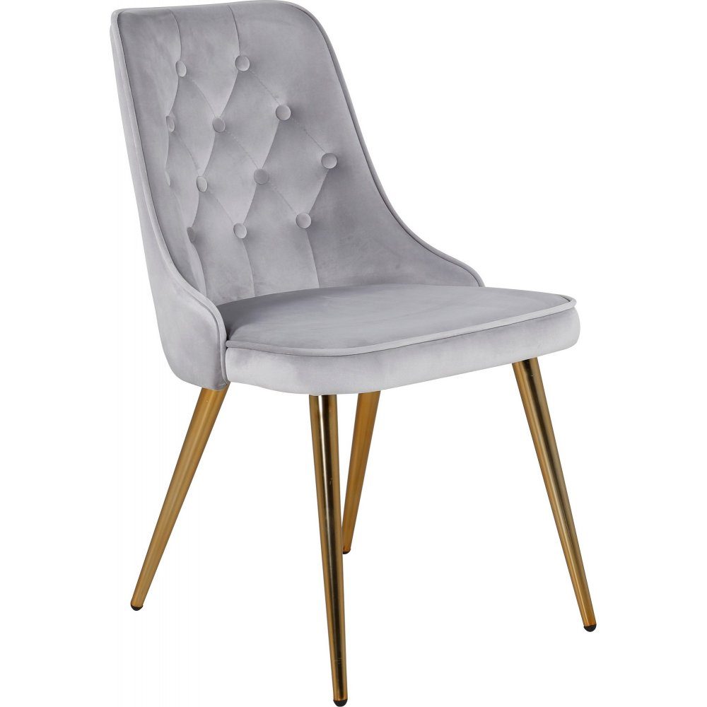 Spisestol laget av metall og kryssfinér, trukket med polyesterstoff.