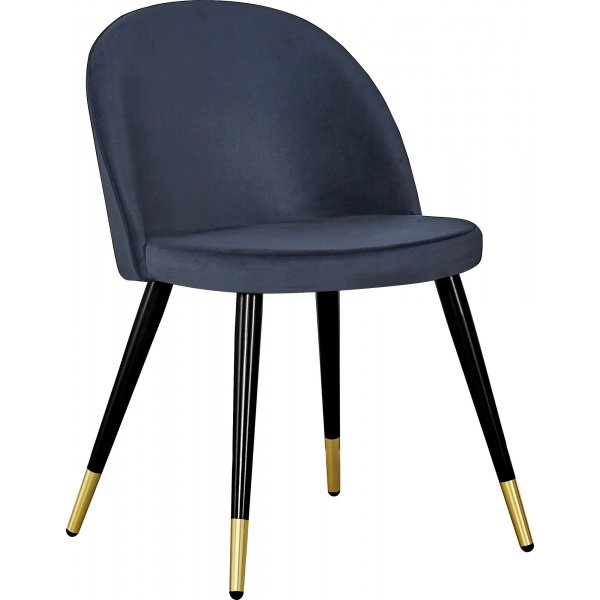 Spisestol laget av metall og tre, trukket med polyesterstoff.