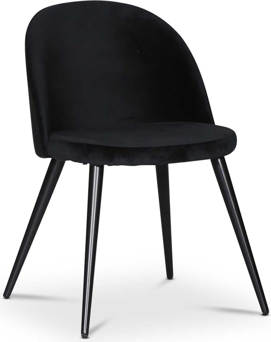Alice spisestol kledd i et luksuriøst fløyelstoff med matchende svarte metallben.