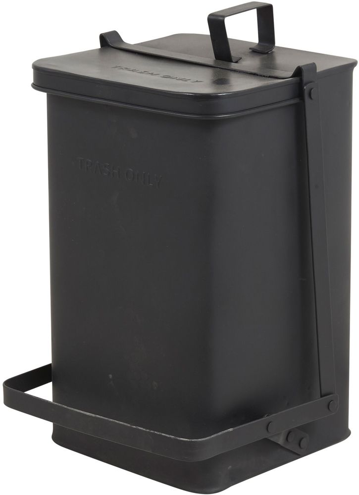 Søppelkasse i industriell stil, laget av svart metall.