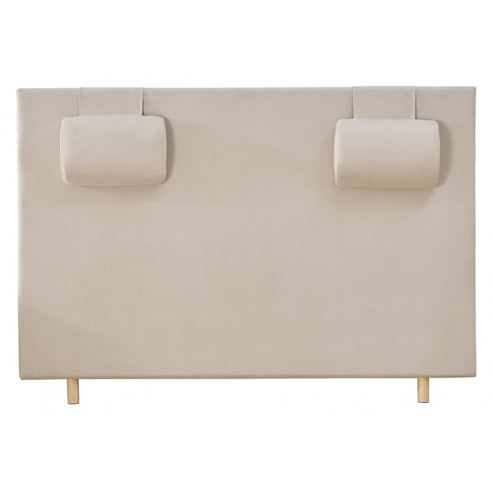 Alnö glatt sengegavl med nakkeputer, 160 cm bred. Total høyde: 125 cm inkludert ben. Beige stoff.