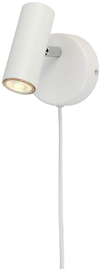 En pen vegglampe med en moderne design. Tilvirket i metall med et hvit utførelse. Justerbar lyskilde.