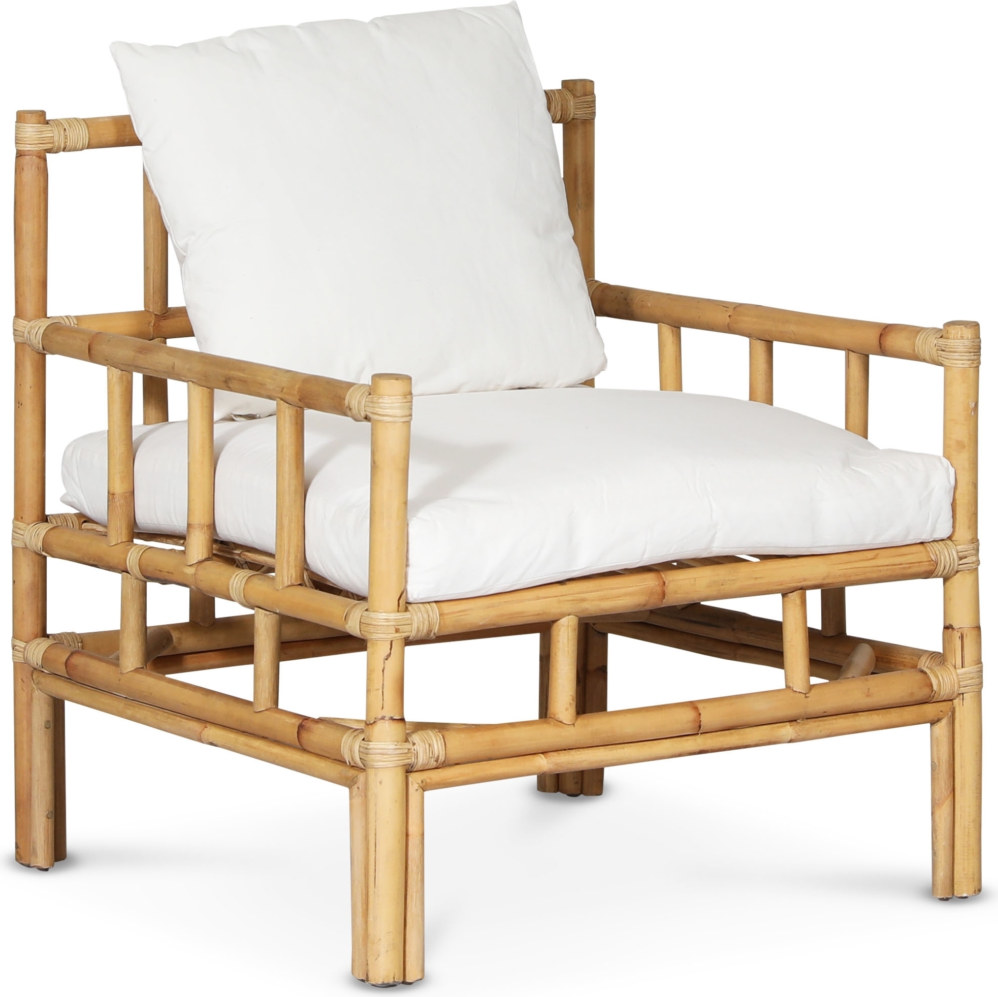Amelia er en serie i naturmateriale med fantastisk fin patina og design. Lenestol i ekte rotting med lys pute.