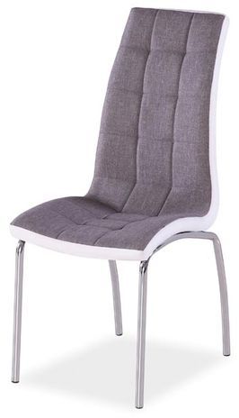 En nydelig spisestuestol med moderne design. Understellet er laget av forkrommet metall og setet er trukket i en deilig blanding av stoff og kunstskinn for maksimal komfort.