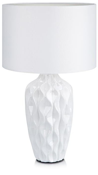 Angela bordlampe med et klassisk design. Laget i hvit keramikk med hvit tekstilskjerm og skjermring. 1,5 meter tekstiledning med strømbryter på ledningen. Stor lampeholder (E27). Max 60W lyspære eller tilsvarende styrke i halogen, lavenergi eller LED.
