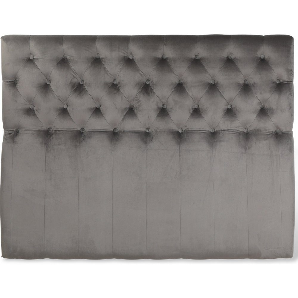 Senggavle Anna i et grått fløyelstoff med en myk følelse. Pen design med dypheftede knapper for å gi et luksuriøst uttrykk på soverommet.