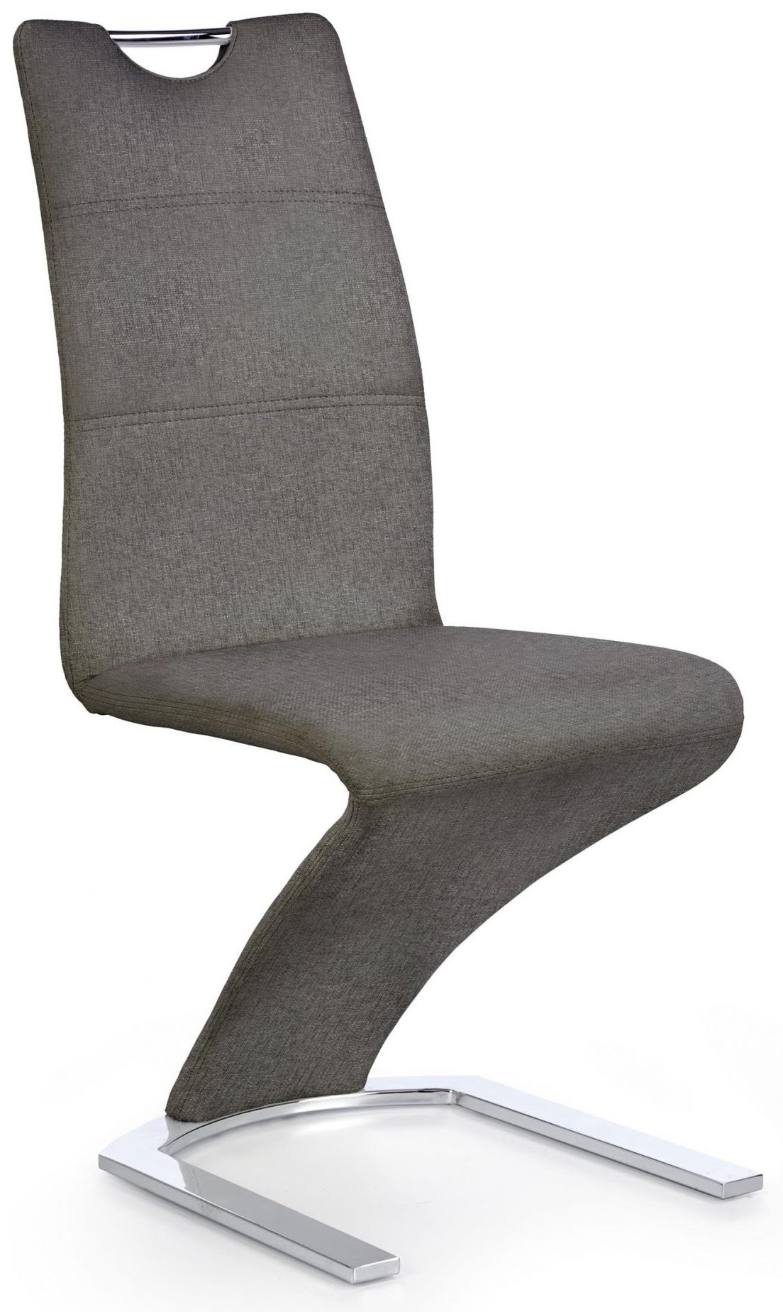 En herlig spisestol med moderne design. Stolen er kledd med et veldig behagelig stoff for maksimal komfort og understellet er av forkrommet metall.