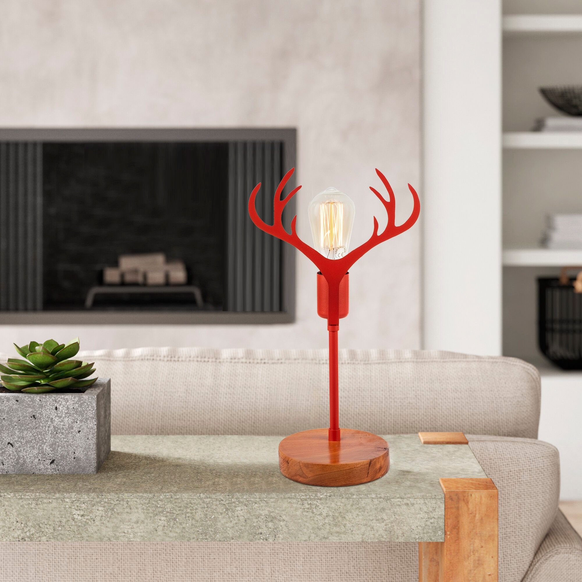 Antler bordlampe - Valnøtt/rød