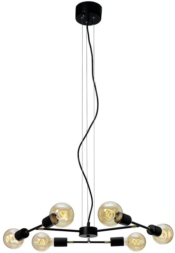 En herlig og praktisk taklampe med en moderne design. Tilvirket i svart metall og med detaljer i messing. Justerbare armer og sokler.