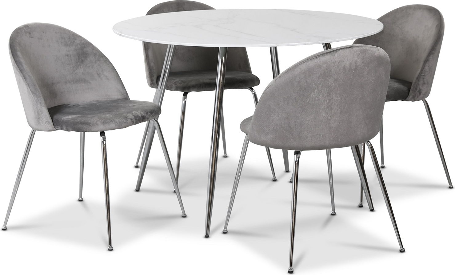 - Art spisegruppe, 110 cm rundt bord + 4 st grå Art stoler
