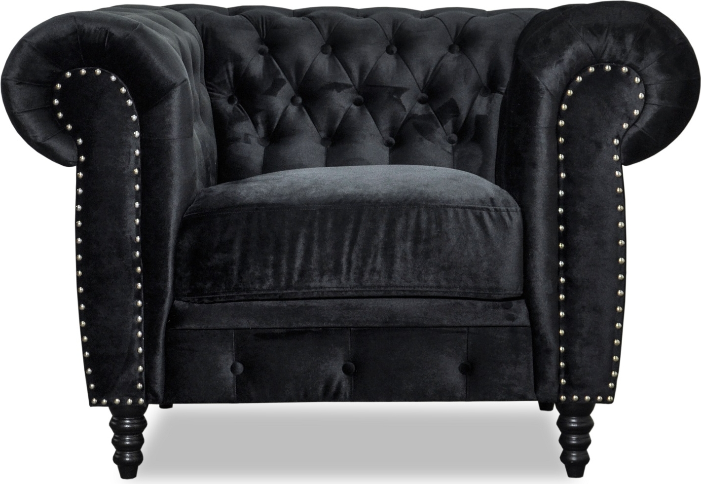 Ashford chesterfield lenestol i et svart fløyelstoff, med herlig komfort og god kvalitet. Pocketspringfjær i setet gir både lang holdbarhet og en fantastisk sittekomfort. Chesterfield er en klassiker som passer både i den moderne eller den klassiske stuen. Svarte vendte ben.