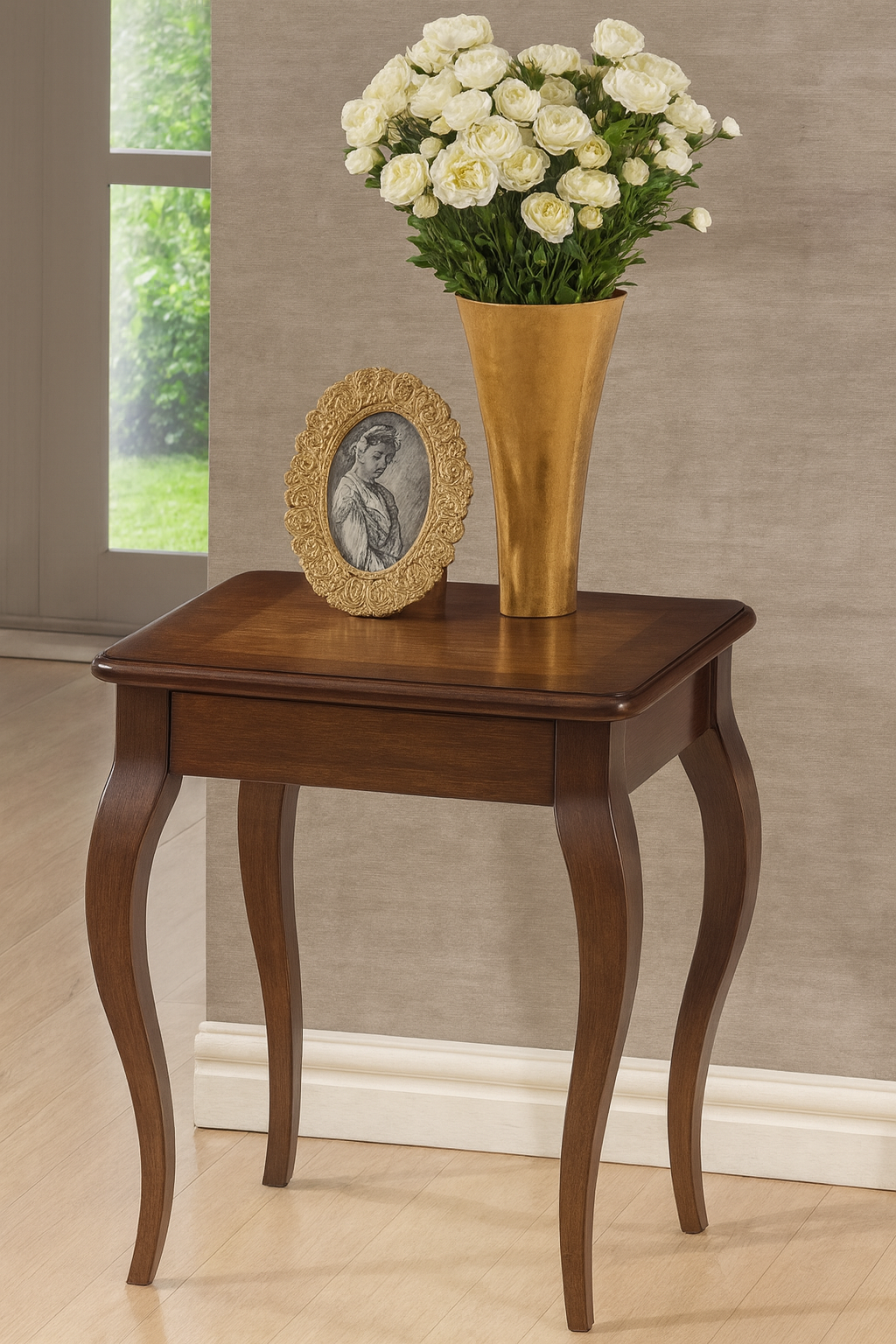Et stilig avlastningsbord med et klassisk design. Bordet er produsert av MDF med etn meget vakkert mørk valnøttfinér.