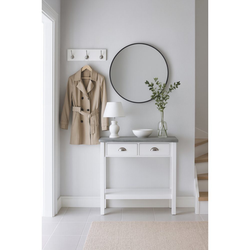 Avlastningsbord Hugo med 2 skuffer - Hvit / Sement + Møbelrengjøring