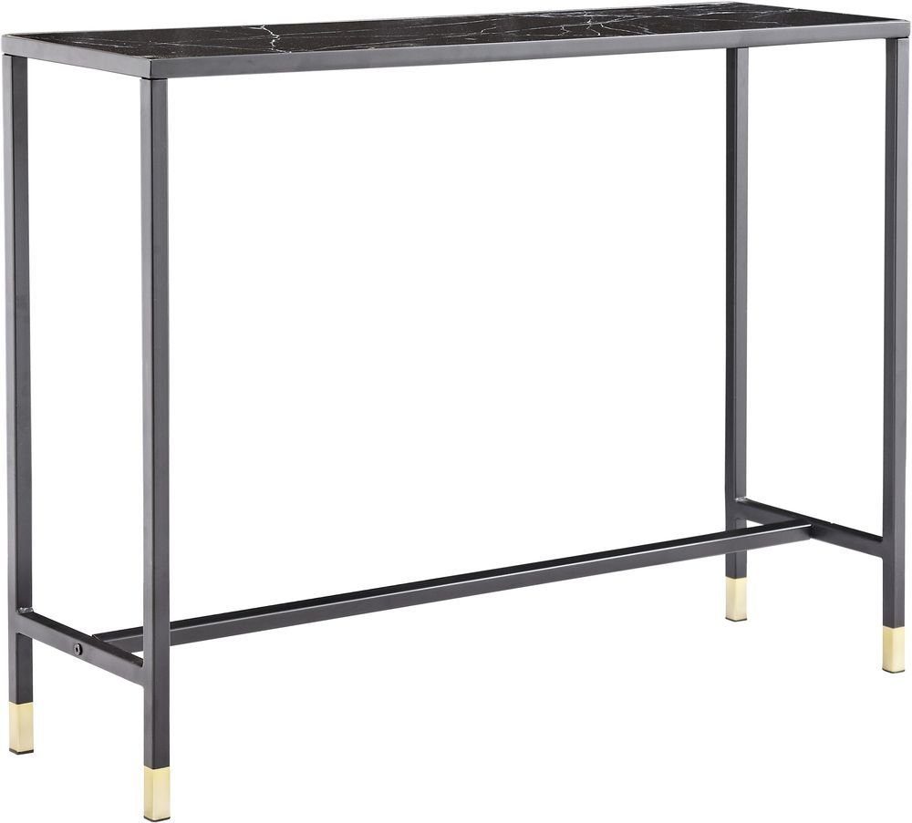 Avlastningsbord med svart mønstret glassplate og ramme i svart metall. Detaljer i messing nederst på bena.