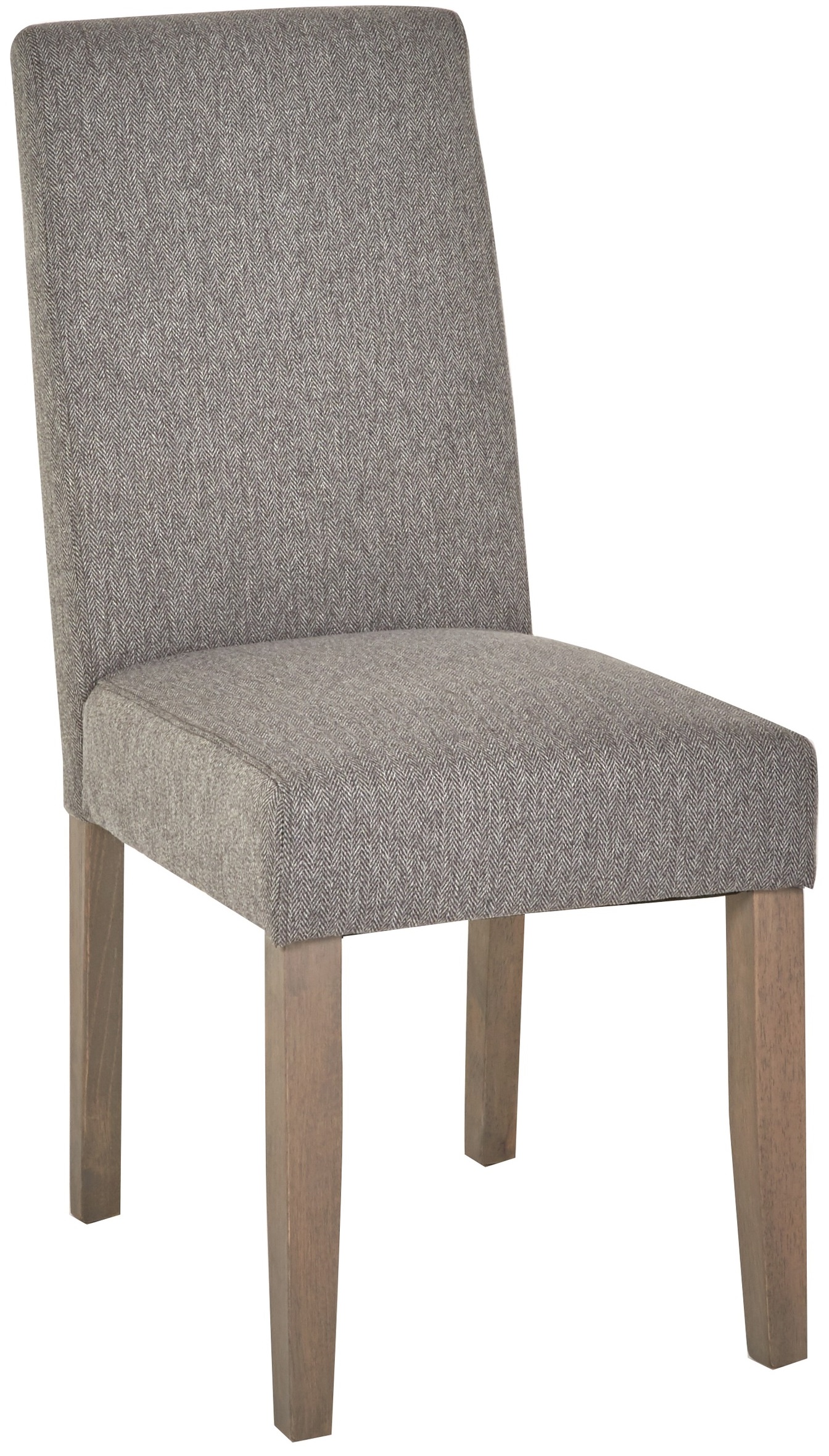 Axel spisestol i et klassisk design. Polstret rygg og sete for god komfort. Stoffet er grått med fiskebeinsmønster. Ben i antikkgrå tre.