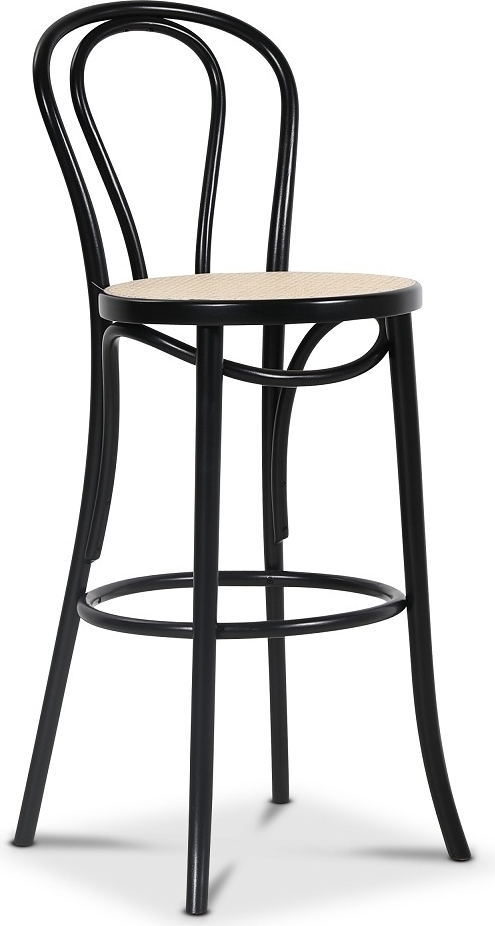 En av de mest klassiske barstolene i bøyetre. Designet av Michael Thonet for over 150 år siden. Stolen har et sete av naturrotting mens stammen er i svartlakkert bøyetre.