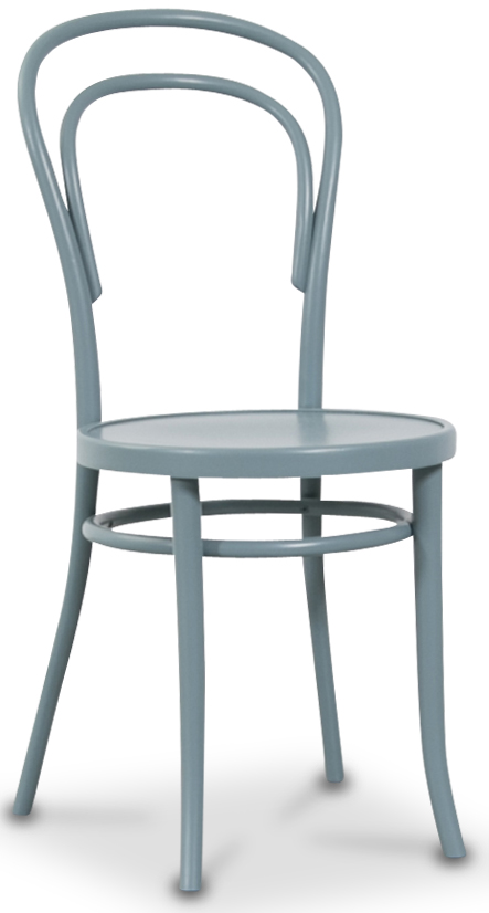 Den klassiske stolen nr. 14 i en pen lakkert lyseblå nyanse. Stolen bygges i Europa av en av de fremste stolprodusentene i verden. Høyeste kvalitet både til hjemmet og offentlige miljø. Trestammen bøyes for hånd i en kvalitetssikret og avansert produksjon for lang levetid.