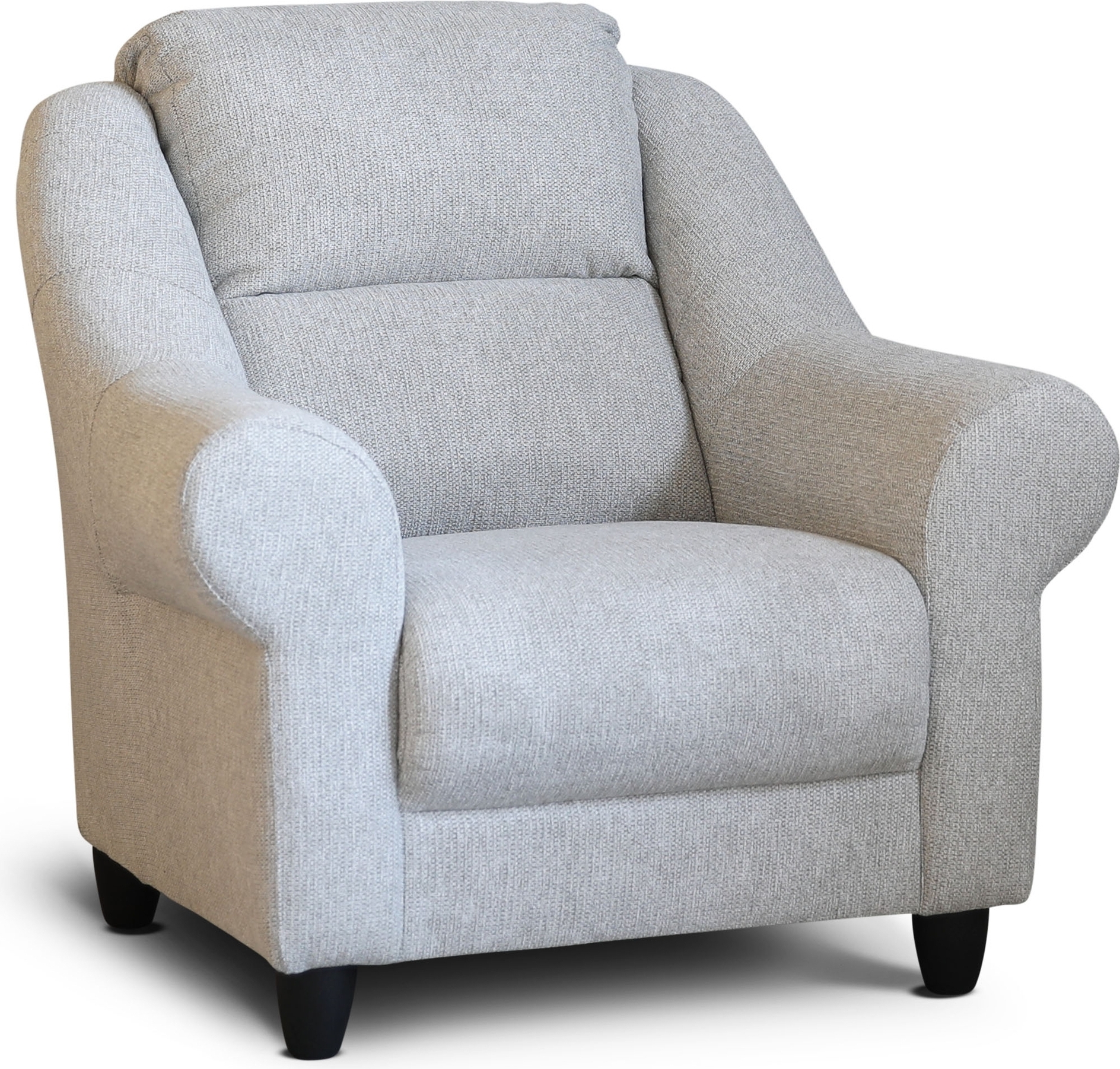 Bali lenestol i gråbeige mykt chenillestoff med sorte ben. Bonell fjær i setet for å få best mulig komfort og slitestyrke.