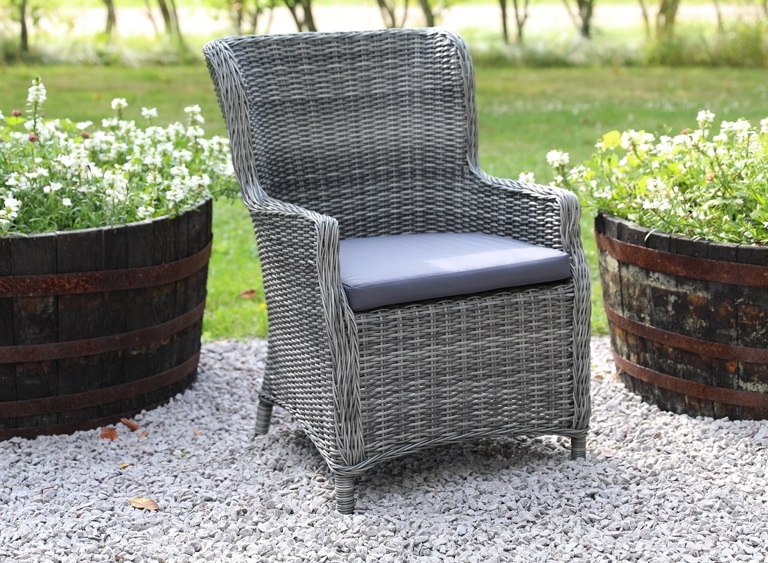 Balkongsettet består av et praktisk sidebord med herdet glassplate i grå syntetisk rotting, sammen med komfortable lenestoler med aluminiumsramme og mørkegrå polyesterputer for ekstra sittekomfort. Bordet er fra Tor-serien og lenestolene er fra Jacksonville-serien.