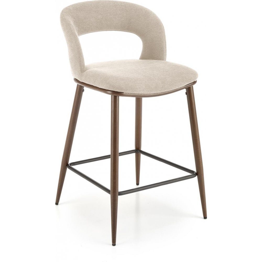 Barkrakk med beige stofftrekk og ben i valnøttlook, en moderne kombinasjon som gir et elegant og innbydende uttrykk. Det polstrede setet gir god komfort, mens den slanke stålbasen gir stabilitet og en stilig kontrast.