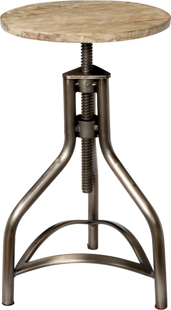Barstol i annerledes design, understell i blank metall og sete i tre. Setet er hev- og senkbart. Hver barstol er unik og kan derfor være ulik i finish.
