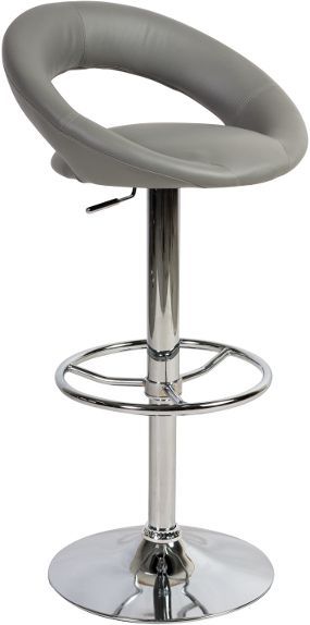 En fin barstol med et moderne design. Understellet er produsert av krommet metall med praktisk fotstøtte og setet er kledd med et meget behagelig kunstlær for maksimal komfort. Setets høyde er lett justerbar ved hjelp av spaken under setet.