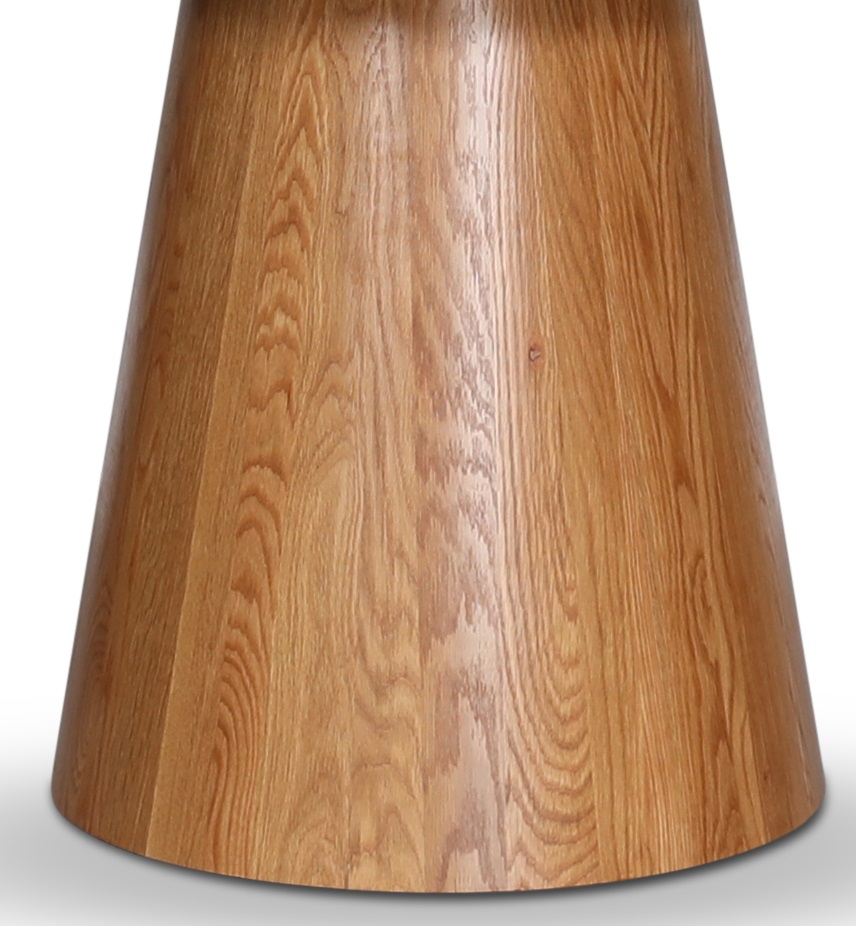 Batisse spisebord med kjegleformet understell i heltre med topp i travertinstein. Den avsmalnende trebasen i vintage design med naturlig tretekstur og sprekker.