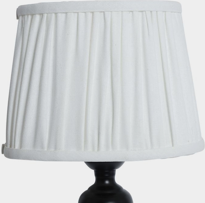 Lampeskjerm med rynket stoff. Den medfølgende spaceren gjør det mulig å bruke lampeskjermen til både E14 og E27 lyspærer. Pære og lampefot følger ikke med.