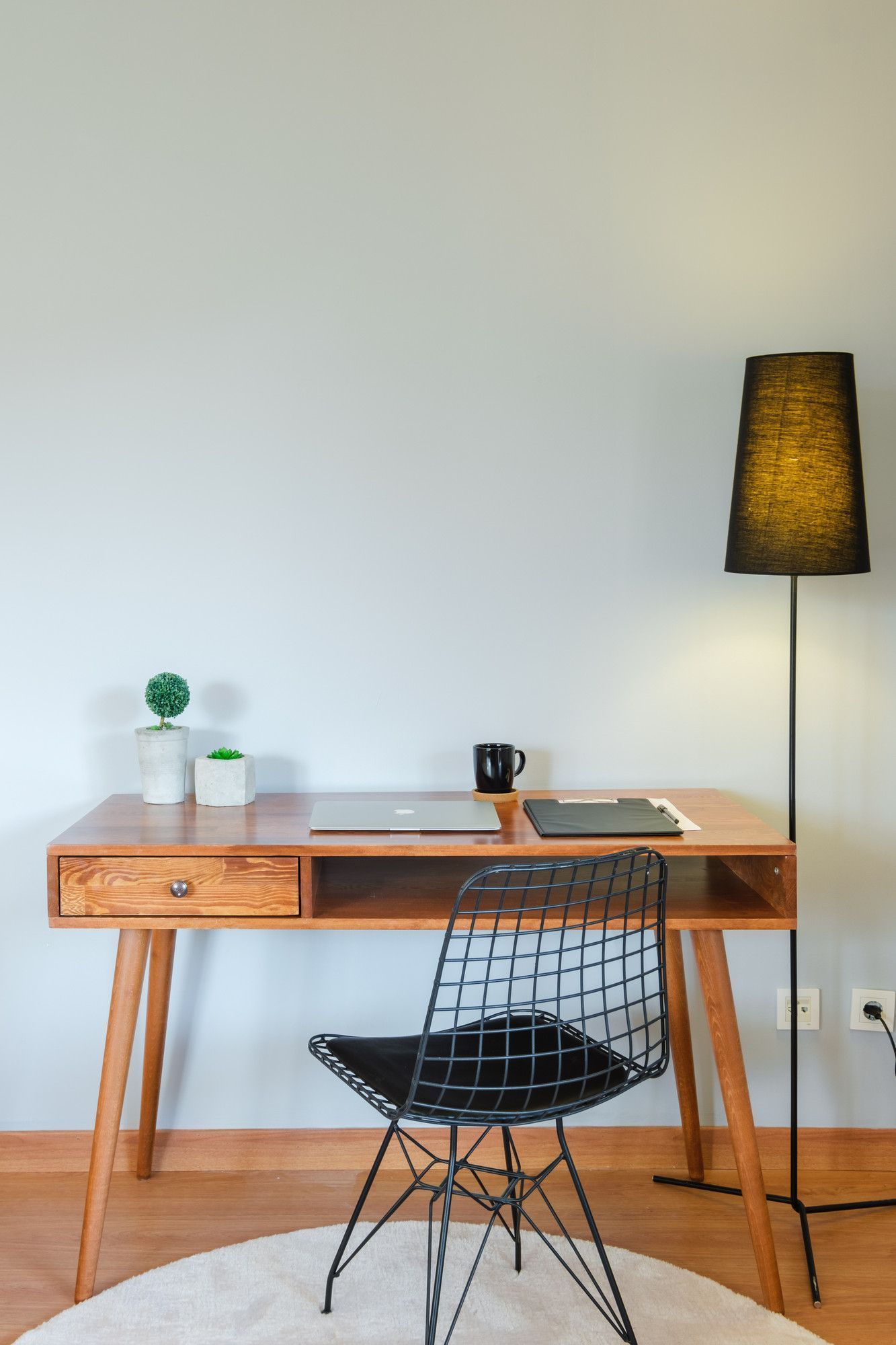 Skrivebord laget av tre.