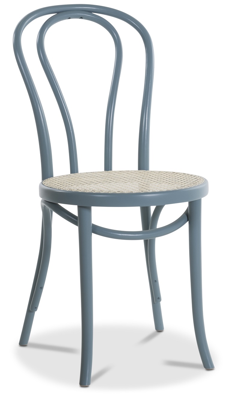 Den klassiske Stol No 18 i pastellblålakkert bentwood med rottingsete! Stolen bygges i Europa av en av de fremste stolprodusentene i verden! Høyeste kvalitet for både hjemmemiljø og offentlig miljø.