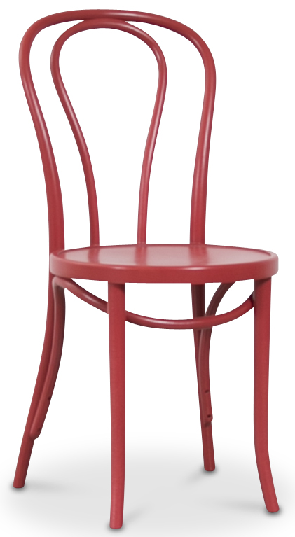 Den klassiske Stolen No18 i en herlig rød bets. Stolen bygges i Europa av en av verdens fremste stolprodusenter. Høyeste kvalitet for både hjemmemiljø og offentlig miljø. Trerammen bøyes for hånd, i en kvalitetssikret og avansert teknikk, for at stolen skal holde et helt liv.