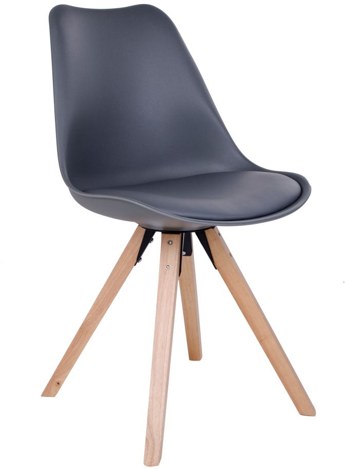 Stol i grått med ben i naturlig tre.