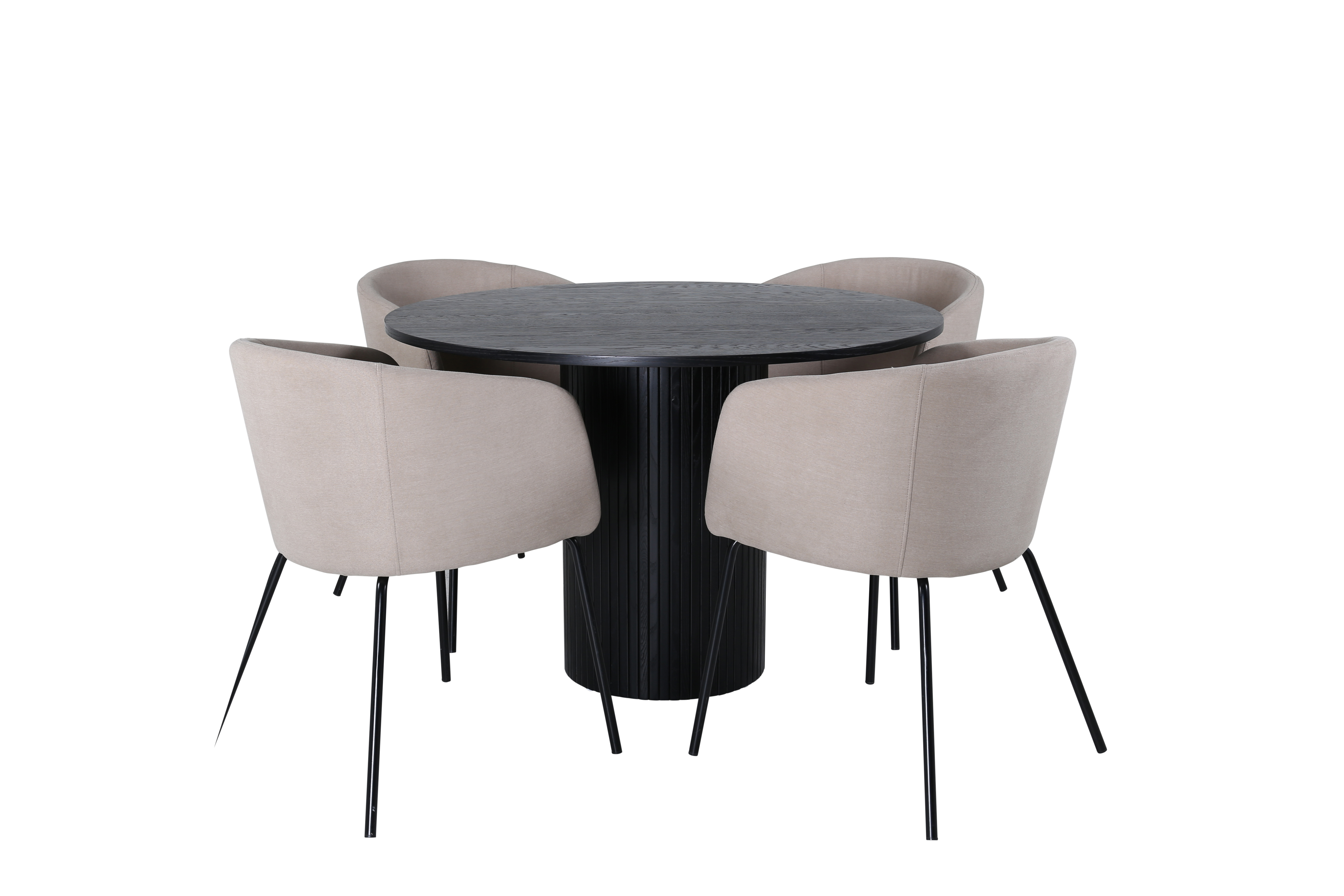 Bianca Spisesett rundt sort spisebord med 4 Berit beige stoler