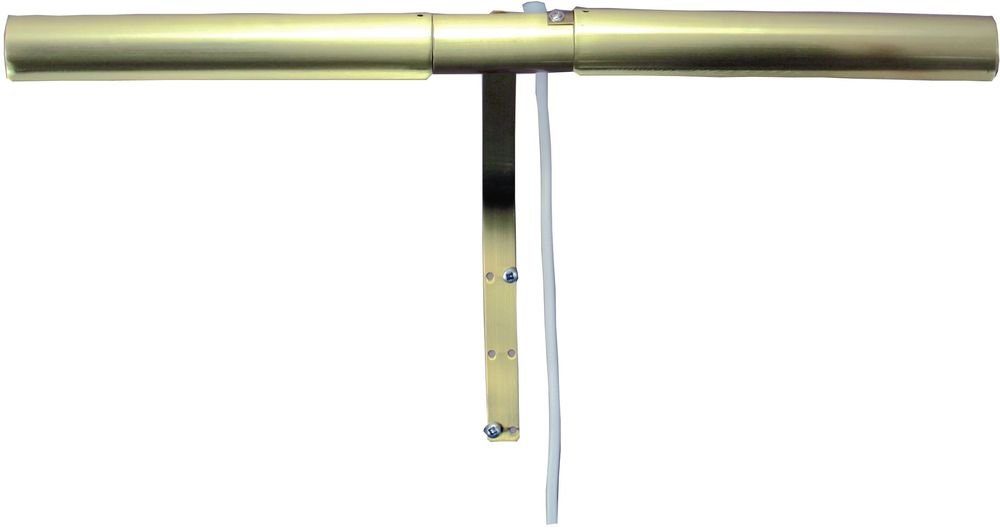Bildebelysning i metall i messingutførelse. Monteres enkelt på veggen bak bilderammen.