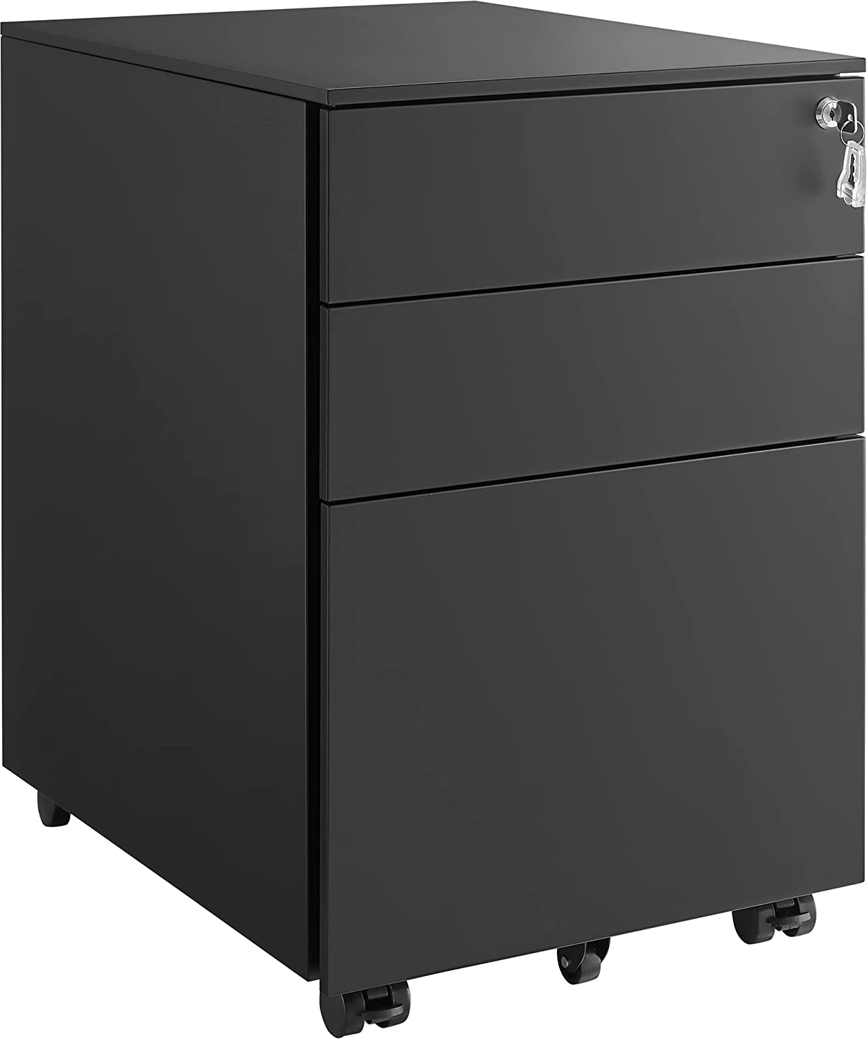 Arkivskap av stål. Låsbart skap på hjul. To av hjulene har bremser og den nederste skuffen har eget hjul for stabilitet.