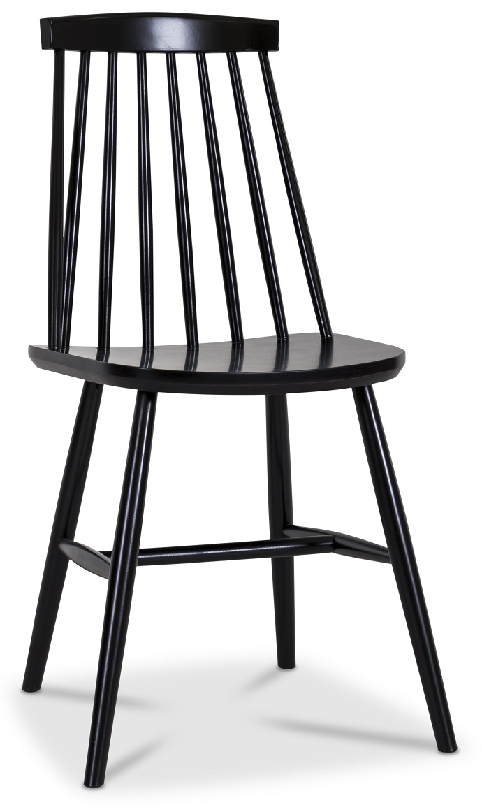 Pinnestolen Birka i sortmalt tre er både klassisk og moderne i sin utforming. En meget behagelig stol som passer både på det lille kjøkkenet og rundt det større spisebordet. Stolen produseres i Europa av en produsent med lang erfaring og med stort fokus på kvalitet. Stolen holder en kvalitet som også egner seg for offentlig miljø.